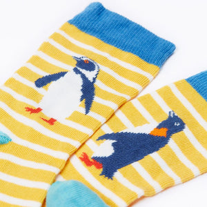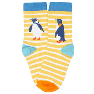 A 3-Pack of colourful penguin-themed socks for children from UK organic label Frugi. Made from organic cotton with contrasting toes and heels.