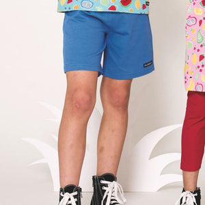 Comfortable relaxed-fit blue cotton shorts for kids from sustainable Swedish brand Villervalla.