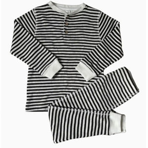 Cosy and comfy long sleeve top/leggings loungewear sets in a black and white candy stripe print from our fave Irish brand, Slugs & Snails.