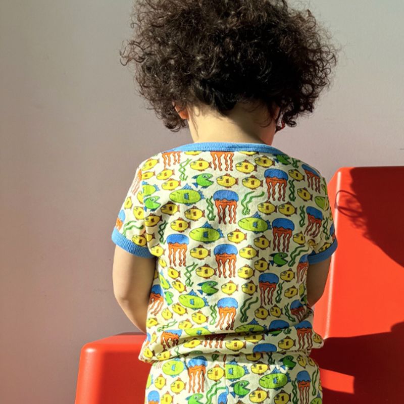 Colourful t-shirt for boys and girls with jellyfish from sustainable Scandinavian label DUNS Sweden.